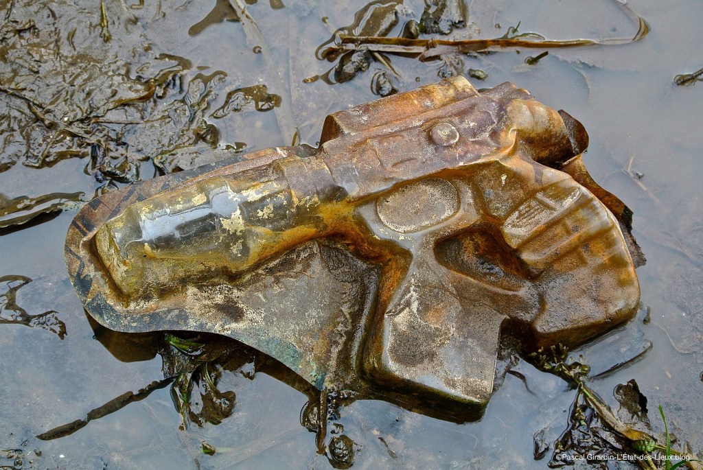 En 2019, le plastique flingueur de notre photo fait partie des 9 milliards de tonnes de polymères issus du pétrole, produits depuis l’année 1950. Soit l’époque ou l’on commença à remplacer en masse, le bois, le métal, le verre, le cuir et les tissus d’origine végétales ou animales par du plastique dans tous les secteurs de la fabrication industrielle. Malgré les alertes à la pollution lancées surtout depuis le milieu des années 1990, la production de «plastiques» de toutes compositions n’a jamais cessé d’augmenter depuis.